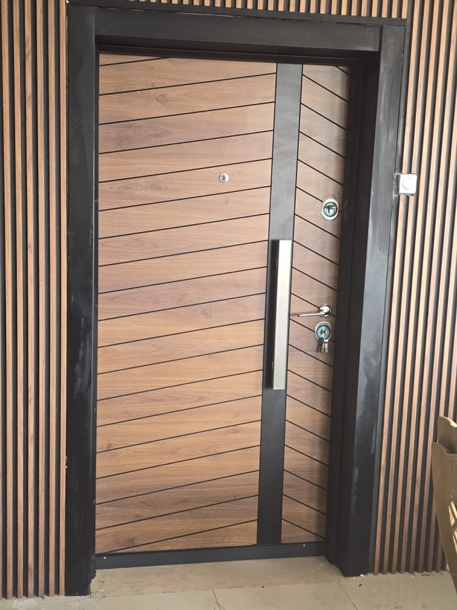 باب حديد مع وجه من الخشب القوي