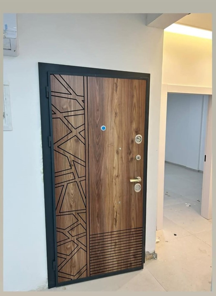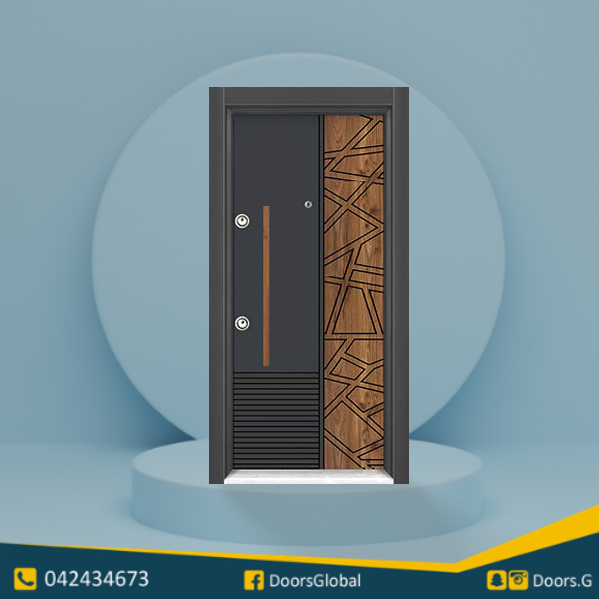 باب حديد مع وجه من الخشب القوي
