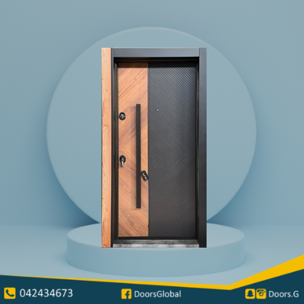 باب حديد مع وجه من الخشب القوي