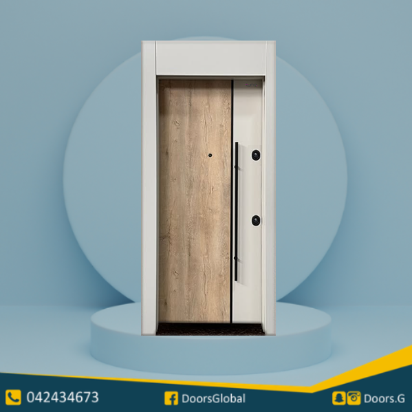 باب حديد مع وجه من الخشب القوي