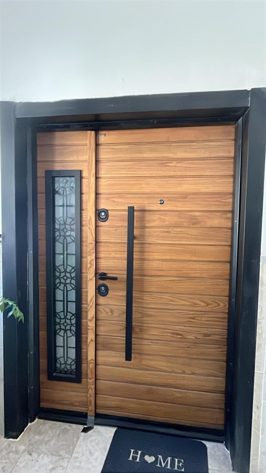 باب حديد مع وجه من الخشب الطبيعي القوي بتصميم عصري بالون الاسود والخشبي المميز